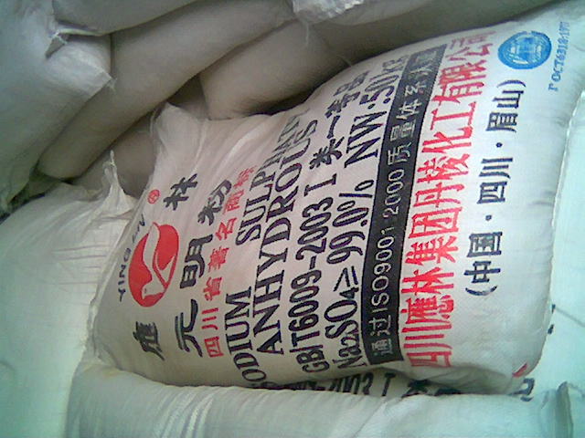 硫酸鈉,無(wú)機(jī)化合物,又名無(wú)水芒硝,白色、無(wú)臭、有苦味的結(jié)晶或粉末, 有吸濕性。外形為無(wú)色、透明、大的結(jié)晶或顆粒性小結(jié)晶。主要用于制水玻璃、玻璃、瓷釉、紙漿、致冷混合劑、洗滌劑、干燥劑、染料稀釋劑、分析化學(xué)試劑、醫(yī)藥品等。  |